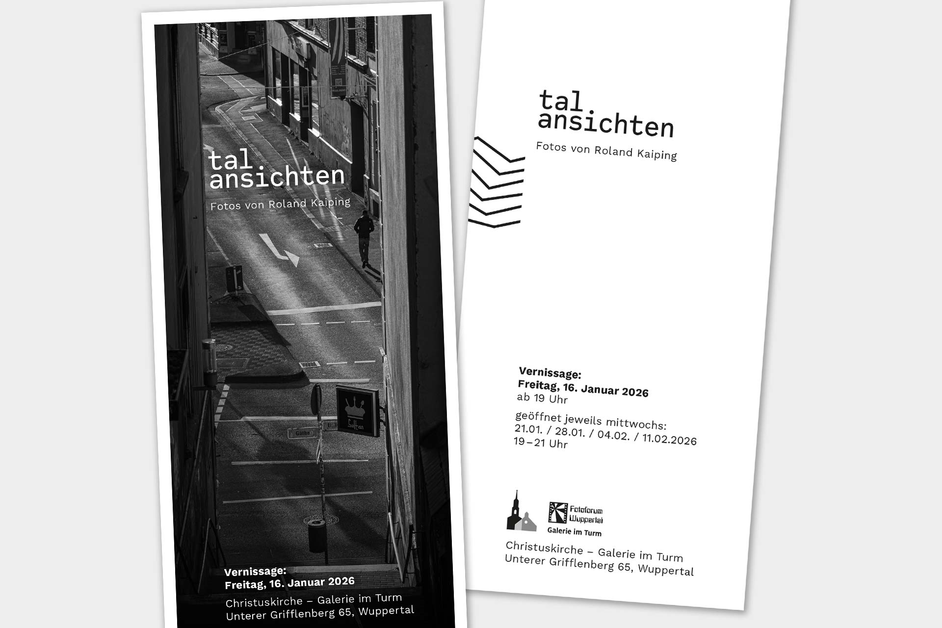 Zur Ausstellungseröffnung „Talansichten“ am Freitag, den 16. Januar ab 19 Uhr lade ich herzlich ein. Sie findet statt in der Galerie im Turm der Christuskirche. Ein Aufzug ist vorhanden. Danke an das Fotoforum Wuppertal, dass ich hier zu Gast sein darf!